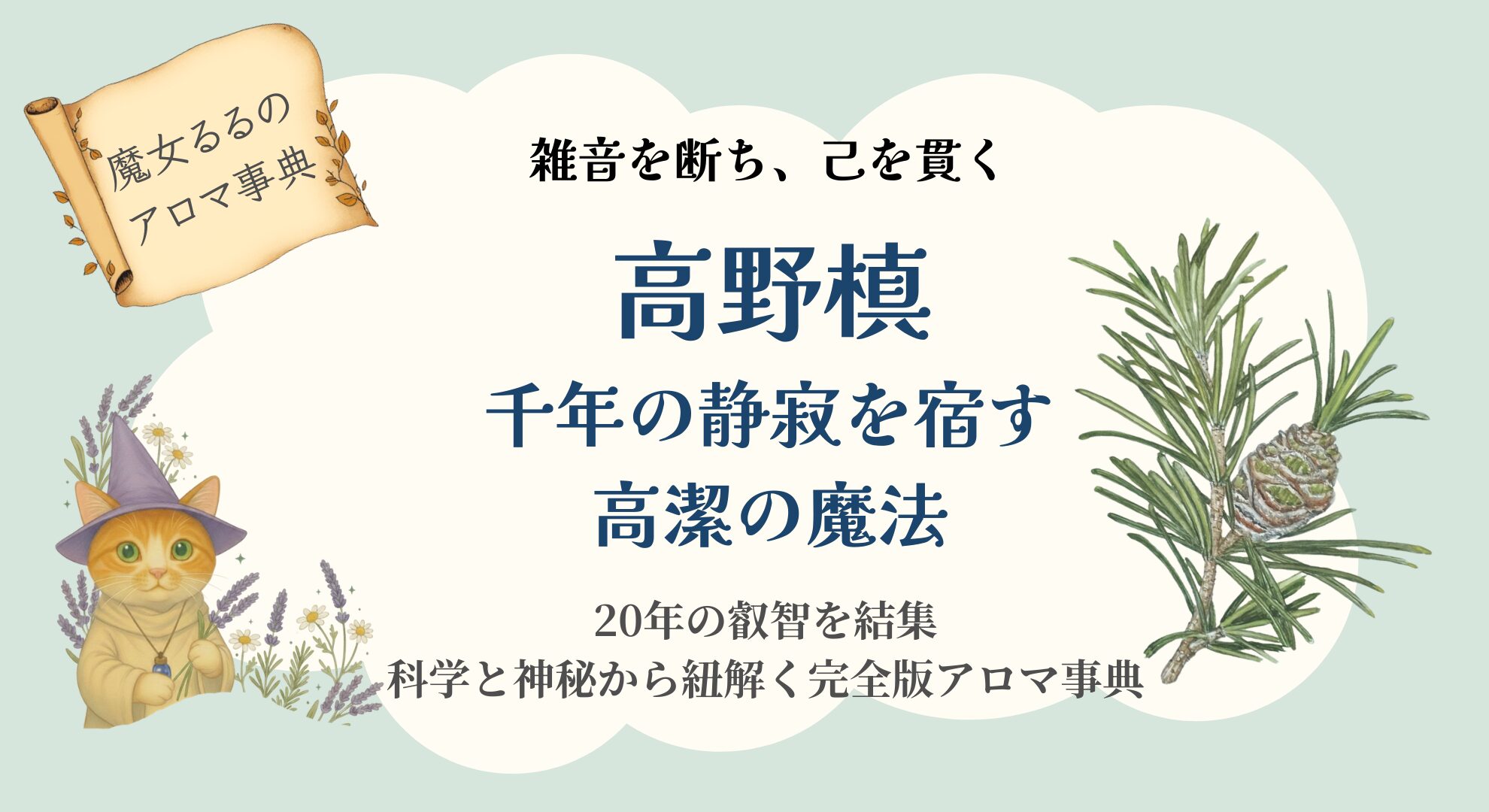 アロマテラピーにおいて、高野槙は「魂の完全な浄化(お清め)」と「揺るぎない精神の軸(グラウンディング)」を司ります。
