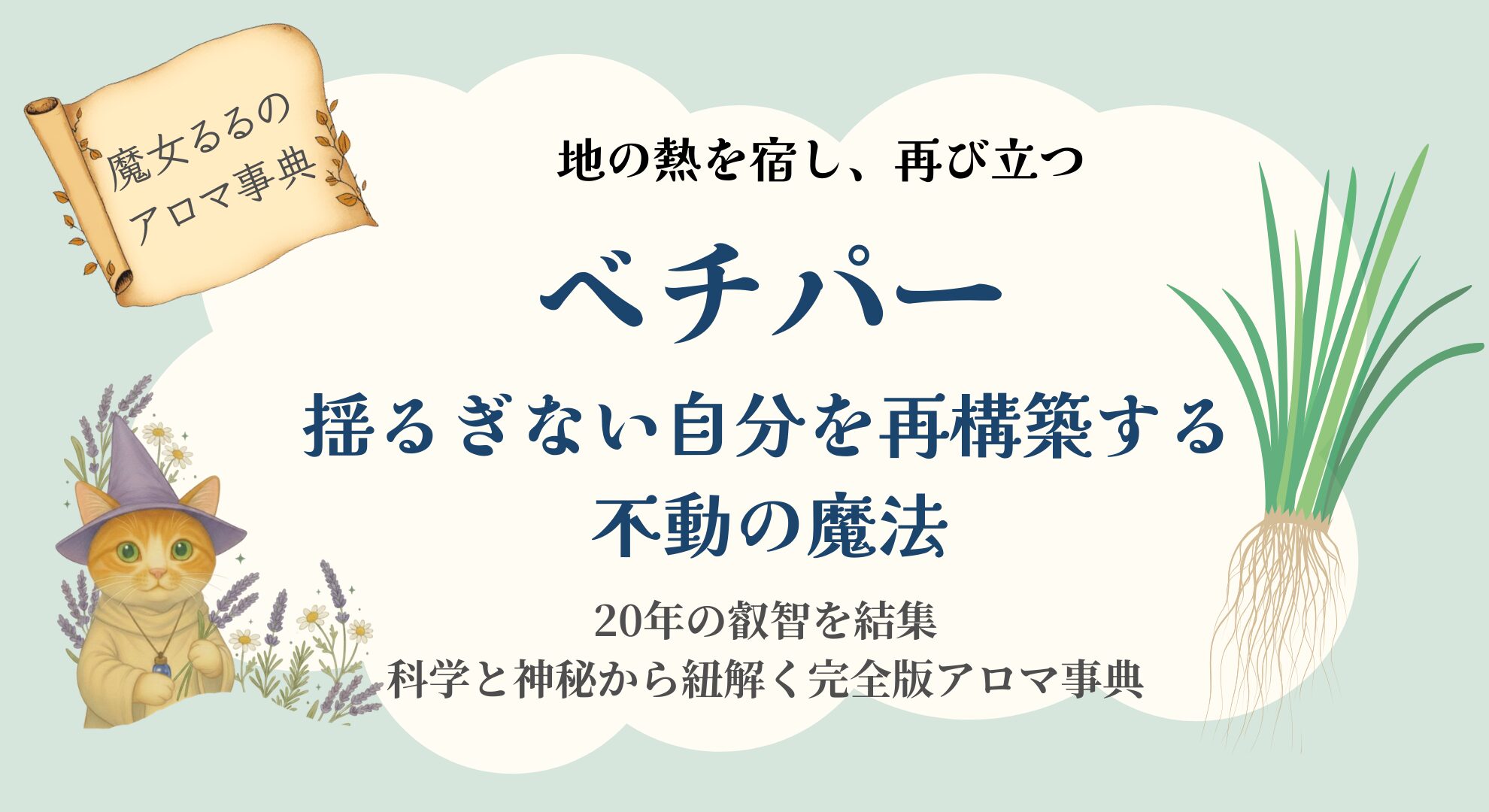 地表に出ている葉は細く目立たないのに、地下には驚くほど太く長い根を張るベチバーは、「見えない部分(潜在意識・土台)の強さ」の象徴です。